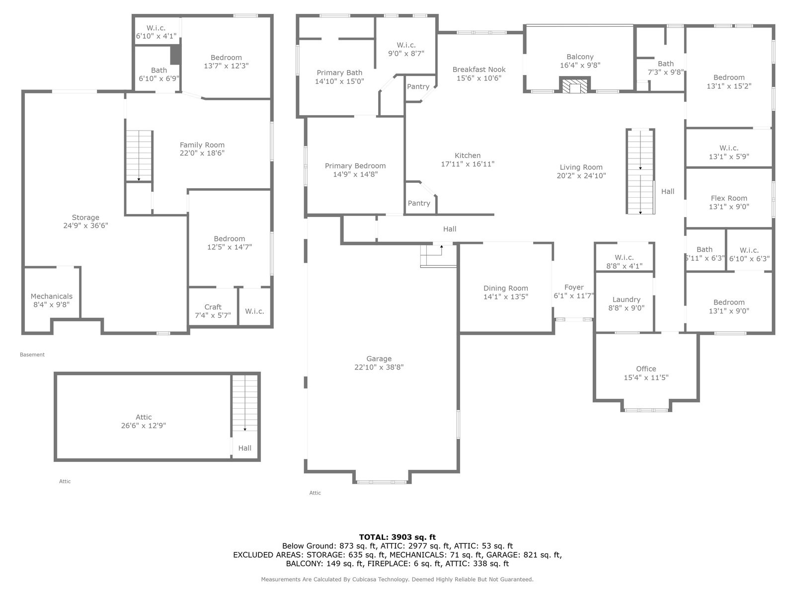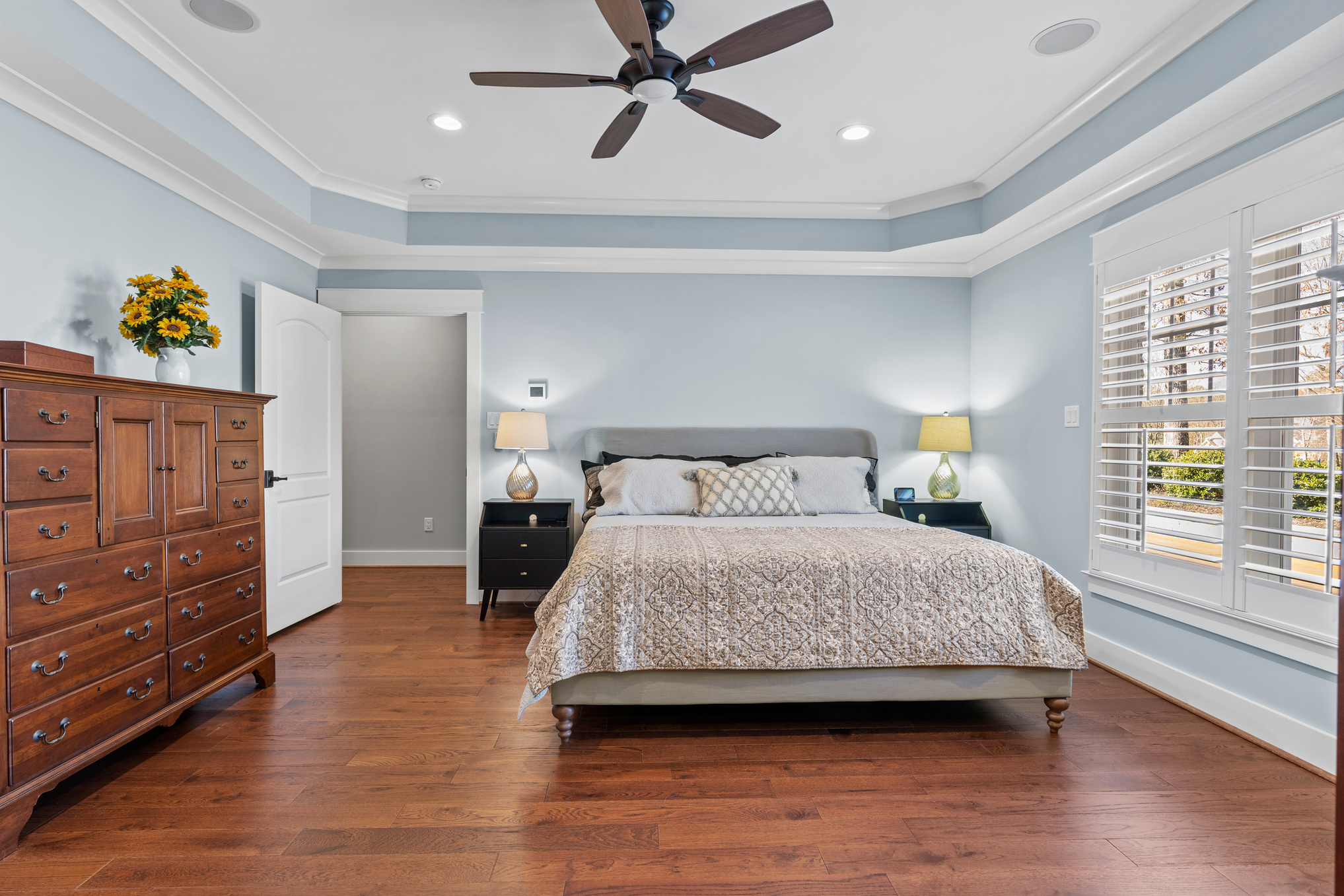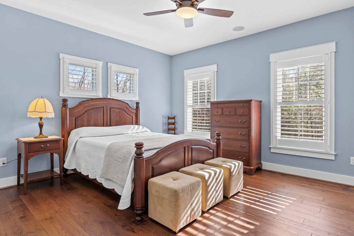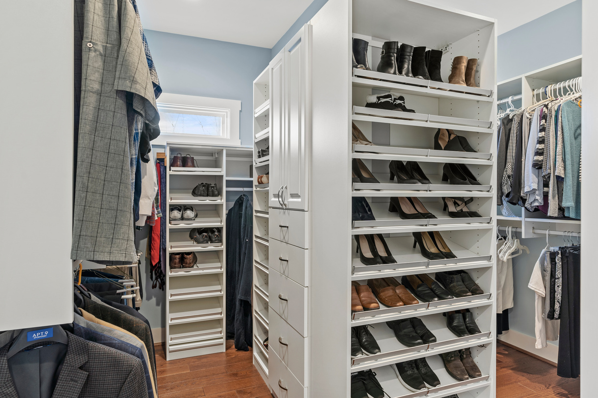 The Primary Bedroom boasts an elaborate custom closet and en suite bath with spacious walk-in shower and luxurious soaking tub. The Second Primary Bedroom features en suite bath and walk-in closet. The main level also has two flex rooms that make perfect office spaces. The walk-up attic offers abundant storage. The lower-level features two additional bedrooms and a full bath with common area in between. PLUS, an incredible conditioned space makes an excellent workshop, hobby room or home gym.