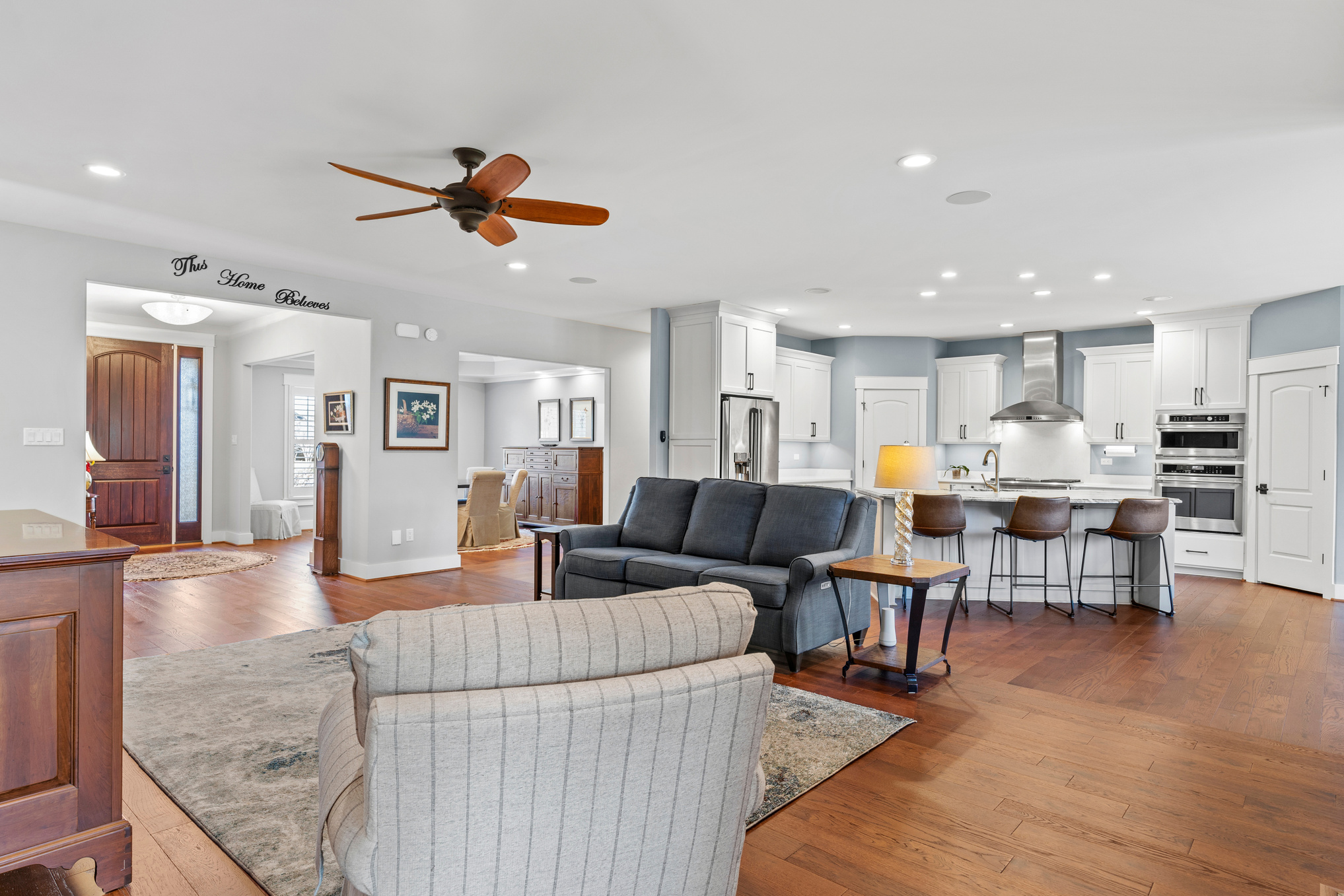 Thoughtfully custom-designed and built in 2019, this Craftsman-style 4 Bedroom, 3.5 Bath home is perfectly nestled in the exclusive upscale neighborhood of Ashton Dell on an almost 3-acre lot and boasts the perfect balance of serenity and convenience. Featuring two Primary Suites on the First Floor which make this an exceptional multi-generational home! As you enter through the gorgeous front door, the welcoming Foyer opens to a stunning Formal Dining Room ideal for entertaining. Stay connected in the open floor plan with a spacious Family Room with fireplace that seamlessly flows into the adjacent gourmet Kitchen with two walk-in pantries, island and beautiful finishes including custom white cabinetry, stainless appliances and quartz countertops.