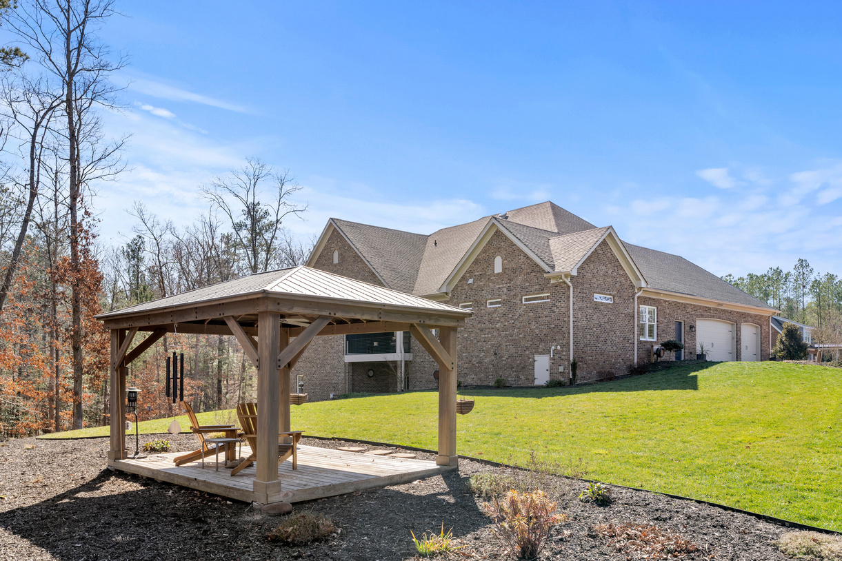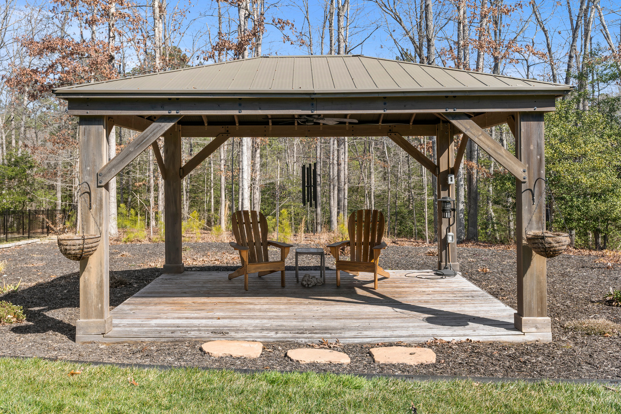 Experience pure bliss on the cozy and always shaded private patio with retractable screens, perched high overlooking the sprawling private wooded back yard oasis. Beautiful gazebo provides a welcoming place to gather with family and friends The 3-car garage features beautifully painted walls and epoxy flooring, as well as a refrigerator which conveys! All other appliances convey, including washer and dryer and Kitchen refrigerator with built-in Keurig! So many more bells and whistles, including whole house generator, custom plantation blinds, programmable landscape lighting, programmable thermostat with separate zones, Geothermal heating and cooling and built-in Klipsch ceiling speakers for whole house music entertainment make this the perfect home of beauty, comfort and ease. Come see for yourself how great life can be!